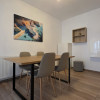 Apartamentul este decomandat, are spații de depozitare pentru tot ce nu vrei să vadă musafirii, o bucătărie închisă (ca să nu miroasă toată casa a mici… dacă asta e specialitatea ta) și un loc de luat masa, care poate deveni și birou dacă ești la a treia ședință pe Zoom azi.