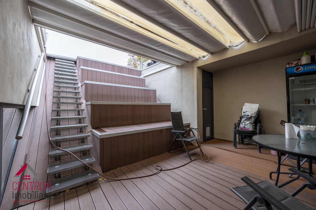 • Etajul: Aici e treaba serioasă! Ai o cameră de 41 mp unde copilul poate să fie rebel, unde adolescentul tau poate sa viseze la o lume mai buna, unde tu poti sa lucrezi de acasa. Terasa de 73 mp vine cu piscină (nu pentru înot olimpic, dar perfectă pentru poze de Instagram) și spațiu suficient să te relaxezi cu un pahar de vin după o zi grea sau o carte citită la lumina naturala.