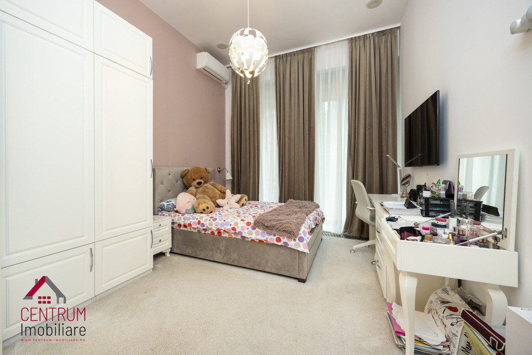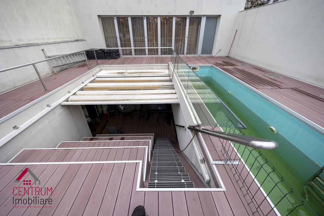 • Etajul: Aici e treaba serioasă! Ai o cameră de 41 mp unde copilul poate să fie rebel, unde adolescentul tau poate sa viseze la o lume mai buna, unde tu poti sa lucrezi de acasa. Terasa de 73 mp vine cu piscină (nu pentru înot olimpic, dar perfectă pentru poze de Instagram) și spațiu suficient să te relaxezi cu un pahar de vin după o zi grea sau o carte citită la lumina naturala.